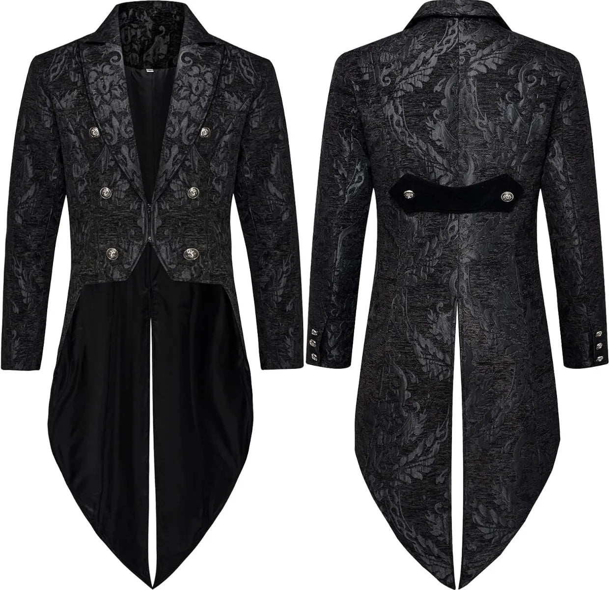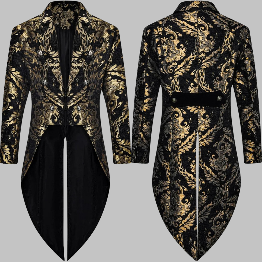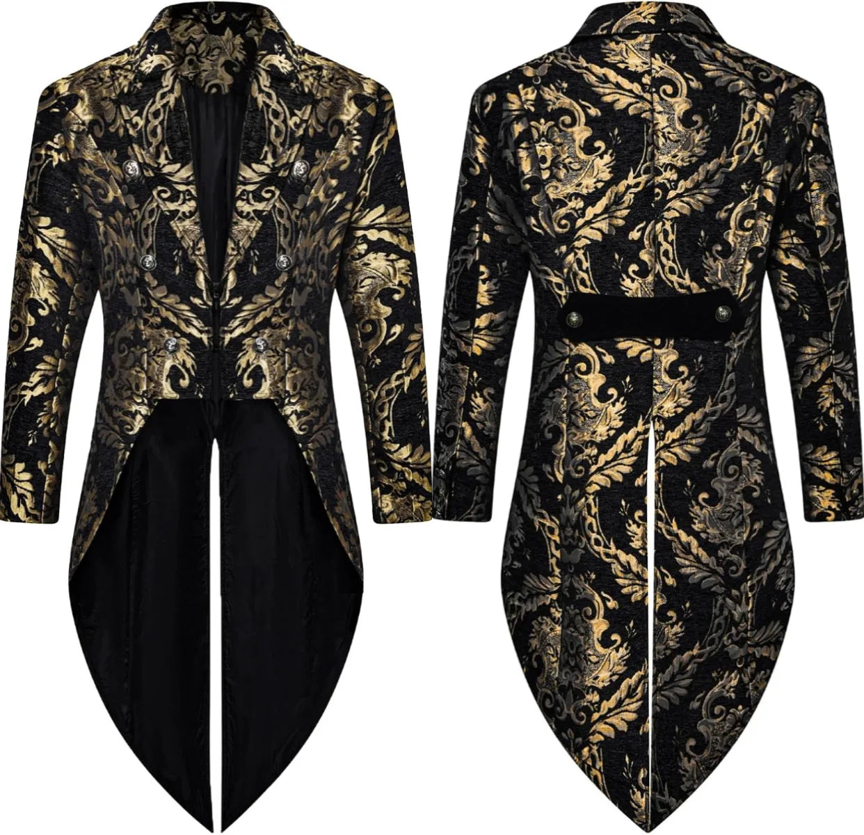 Men’s Gothic Steampunk Tailcoat with Embroidery – Black and Gold