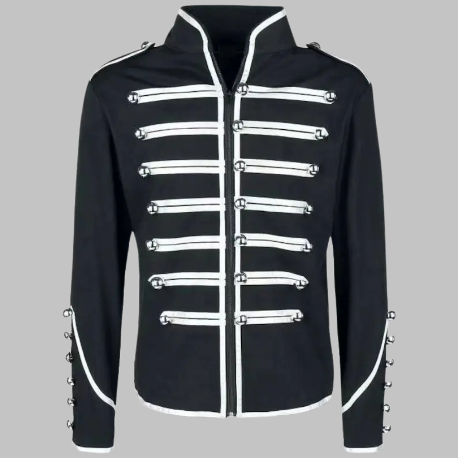 Immerse yourself in the retro-futuristic universe with this men's jacket inspired by steampunk and gothic style. With its high collar, decorative buttons, and elegant patchwork, it is ideal for themed parties, costume events, concerts, or simply for an original everyday look.