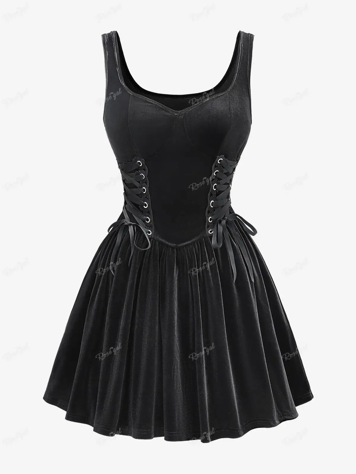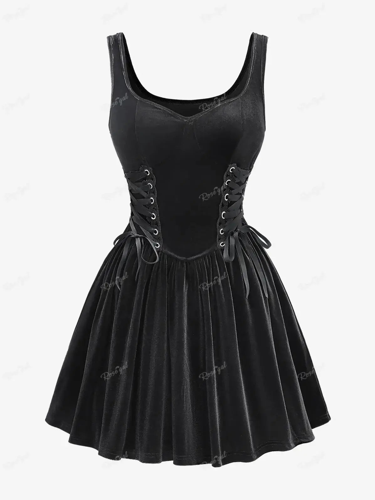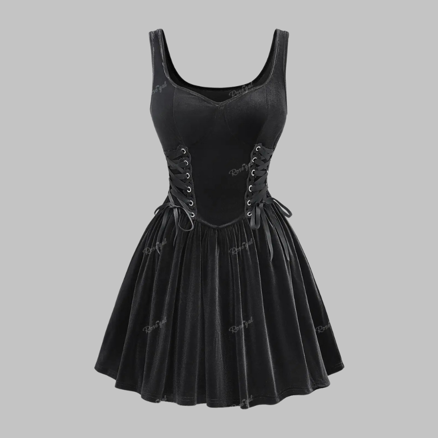 Plus Size Black Gothic Dress with Corset and Flared Skirt