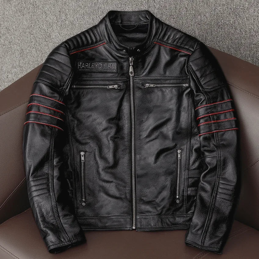 Exiba um visual arrojado com esta jaqueta de couro genuíno para homem, adornada com bordados e padrões de caveira. Pensada para viagens, saídas urbanas ou entusiastas de motos, esta peça combina robustez, estilo e conforto. Perfeita para as estações intermédias.